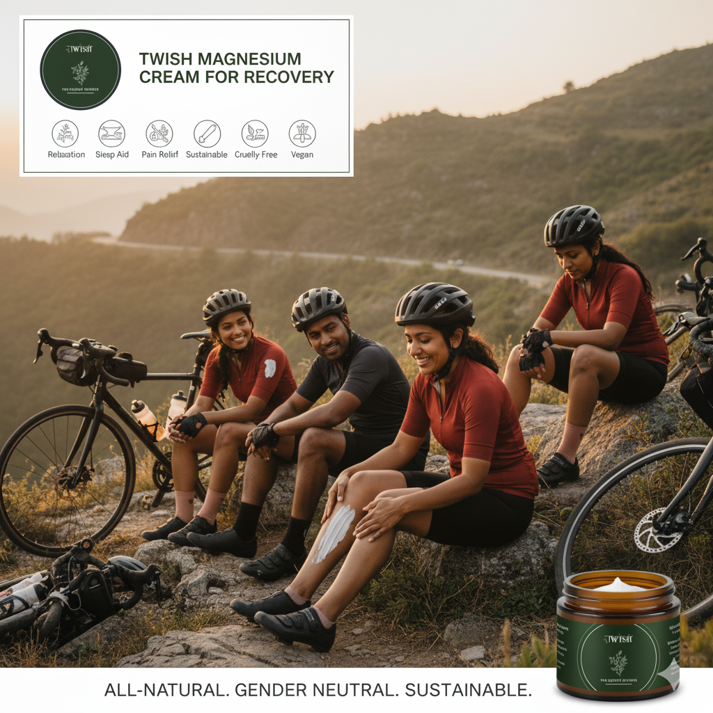 At Twish, every ingredient is thoughtfully chosen to deliver both effective care and peace of mind. Our blend includes naturally derived oils and butters—like olive, shea, and jojoba—to deeply nourish and hydrate your skin, while pure magnesium chloride offers relaxing comfort. To preserve the freshness and performance of your cream, we use a minimal amount of safe, globally-approved synthetic ingredients (like phenoxyethanol and BHT). These play an essential role in keeping your product stable and free from contamination, meeting the highest standards